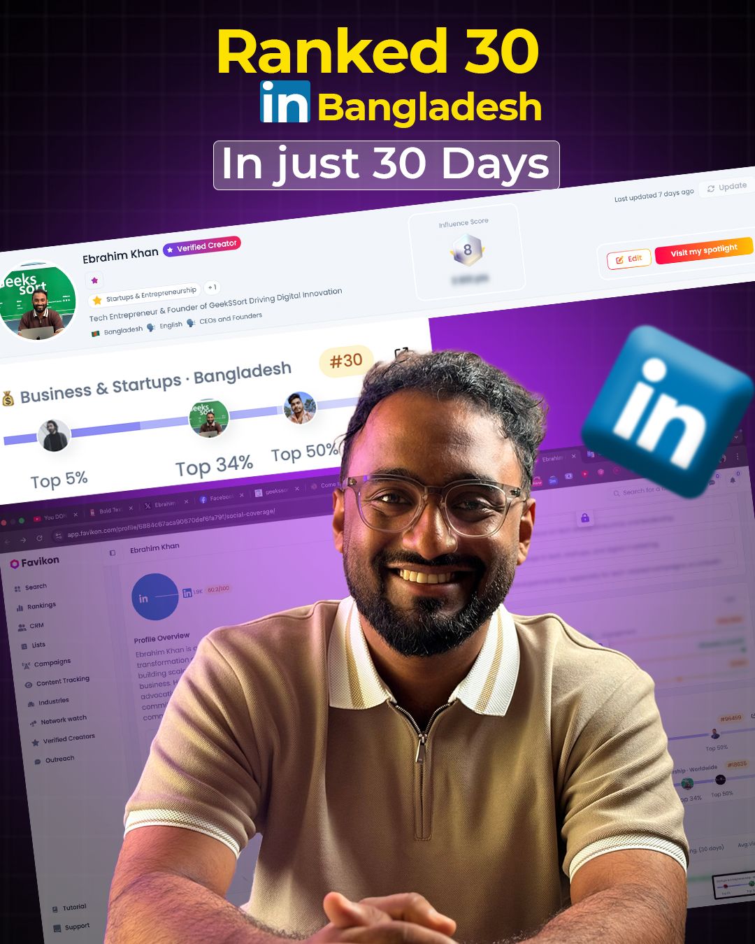 Alhamdulillah! In just 30 days, Favikon listed me in Bangladesh’s Top 30 on LinkedIn (Business & Startups).